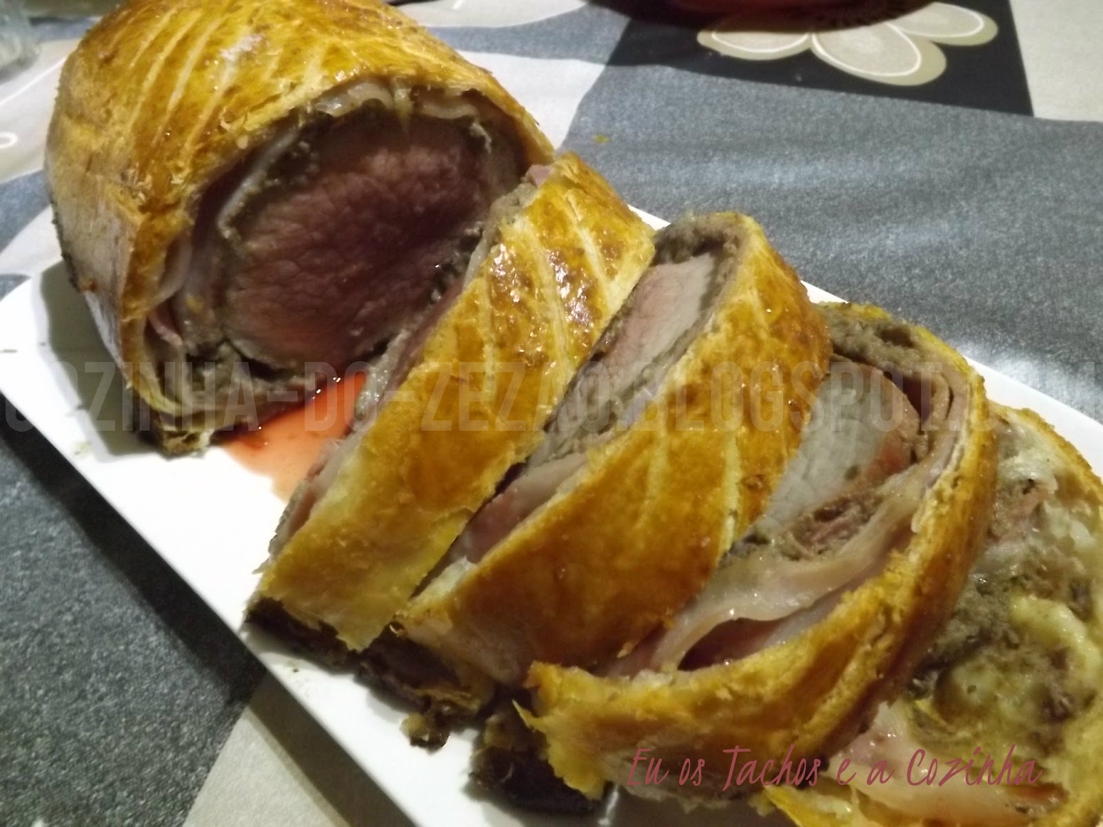 O Beef Wellington, uma receita anglo-saxônica muito popularizada em programas de culinária, sendo o Chefe Gordon Ramsay (16 estrelas Michelin) um dos principais. Nada menos que um lombo de boi ou vitelo embrulhado em massa-folhada (solomillo en hojaldre, como dizem nuestros hermanos) com foie-gras (patê de fígado de pato), cebola, cogumelos e presunto de Parma. Segundo conta a historia na qual não sé da por verídica, o 1º duque de Wellington, Arthur Wellesley mandou fazer para comemorar a vitoria da batalha de Waterloo contra Napoléon Bonaparte. A este senhor gostava-lhe a mistura de foie-gras com a carne, sendo verdade ou não hoje em dia este clássico da cozinha esta espalhado por todo o mundo com varias versões de recheio. Com uma apresentação elegante digna de um banquete, apesar de parecer complicado e uma receita bem simples de fazer na qual o sucesso depende da qualidade dos ingredientes.