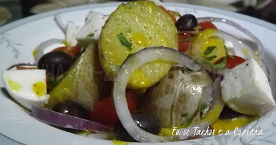 Este fim de semana deu-me outra vez para saladas ( há dias assim) e esta bem pratica e rápida com um sabor forte e bem pronunciado para estes dias de inverno. Muitas pessoas às vezes me põe questões de; “Qual o tipo de azeitonas usar entre pretas e as verdes?”