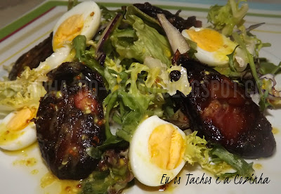 Os dias começam a aquecer é brevemente teremos o Verão a porta e com isso chega a vontade de comer coisas leves, mais ligeiras. Nessa altura nada melhor que as saladas, mas visto ainda não ser Verão e apesar de o sol dar um ar de sua graça, aqui fica uma salada com algum reconforto pensando já nos dias quentes que vem por ai.